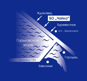 Расположение: База отдыха расположена в 80 км. от Н.Новгорода в Городецком райне на берегу Горьковского водохранилища в экологически чистой, живописной курортной зоне. Хвойный лес, «мачтовые» сосны, целебный воздух – прекрасное место для семейного отдыха, празднования юбилеев, свадеб, проведения корпоративных мероприятий, отдыха дружескими компаниями.