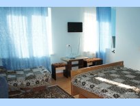 Характеристика номеров: 2,3-х местные номера оборудованы: двуспальная кровать, тумбочки, зеркало, шкаф, телевизор, санузел с душем, сплит – система.